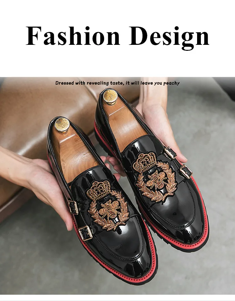 Luxury Fashion Embroidery Men's Leather Shoes Size 38-48 Comfortable Black Formal Shoes for Man Wedding Party Social Shoe Male