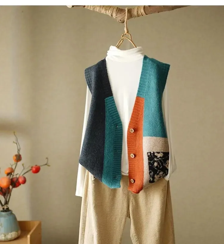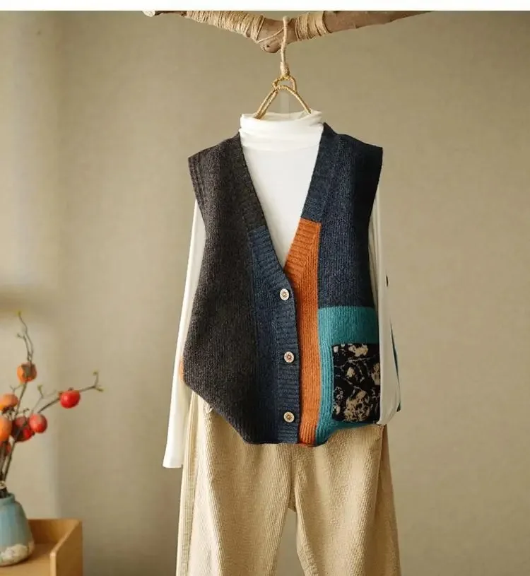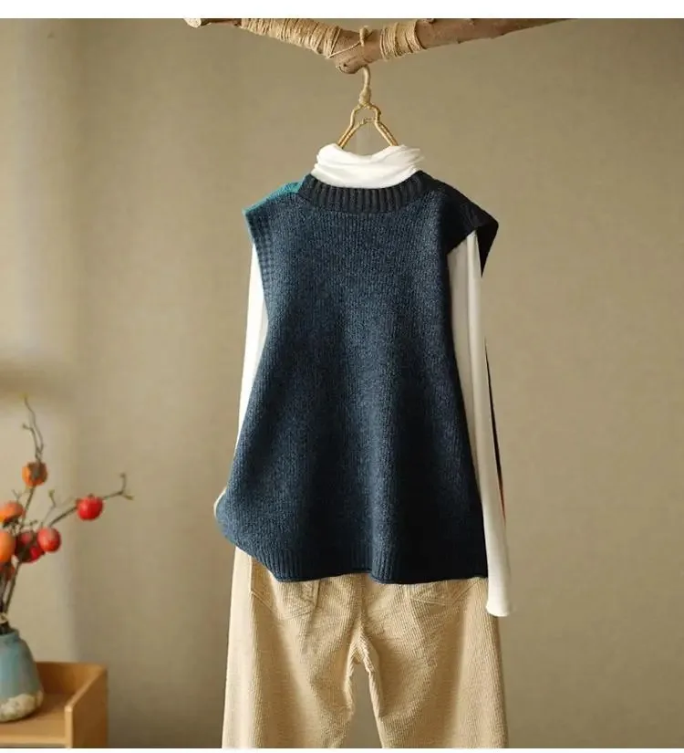 Retro Knitted Vest Cardigan Autumn/Winter Loose Design Sense Small Sweater Tank Top Women Outwear Sweater Vest Female
