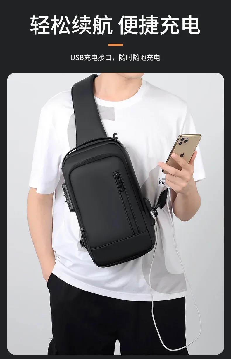 Shoulder Messenger USB Chest Bag Anti Theft Large Capacity Men Oxford Sling Crossbody Sports Travel Gym Waterproof Multifunction