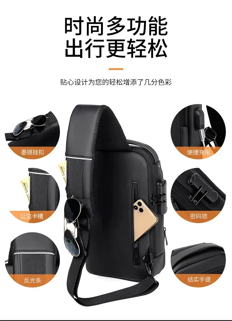 Model Number: Shoulder Messenger USB Chest Bag Anti Theft Large Capacity Men Oxford